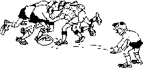 ノックオンやスローフォワードのような小さな(軽い)反則があった時は、スクラムを組んでボールをとりあいます。